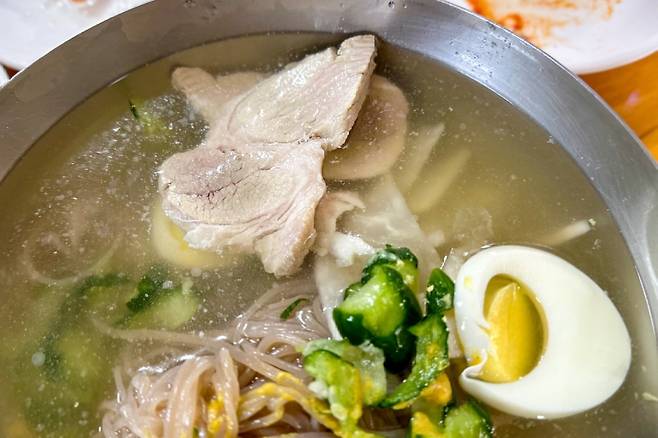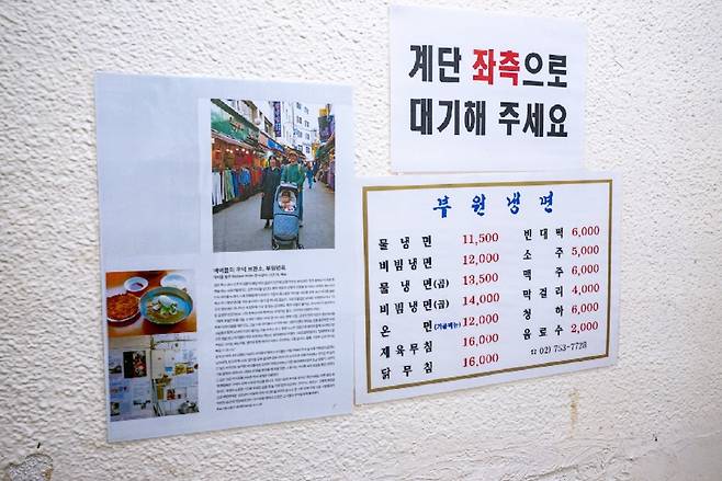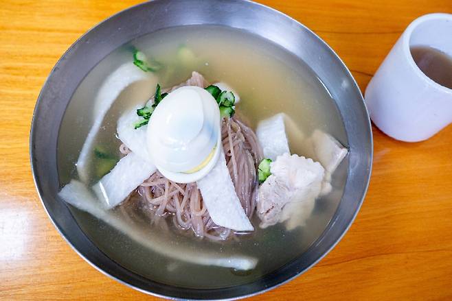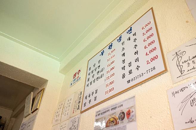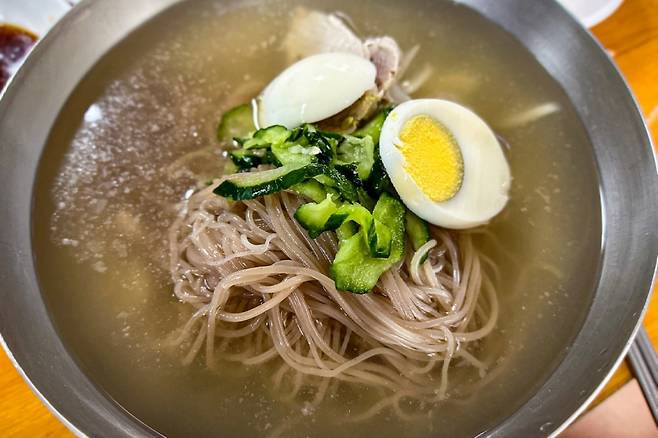 가게는 좁은 편인데 워낙 소문이 자자해 해외 관광객도 찾아오는 명소가 되었다. 이곳은 평양냉면 전문점으로 물냉면이 주전공이다. 수육은 소고기가 아닌 돼지고기가 들어 있는데 도톰하게 잘라서 냉수육 자체가 입에서 충실하게 씹힌다. 육수도 다른 평양냉면과는 다르게 간이 조금 있다고 느낄 수 있다. 그래서 보통의 평양냉면보다 심심함은 덜한 편이다. 면발은 100% 메밀이 아닌 전분을 섞다 보니 순수한 메일을 좋아한다면 거부감이 들 수도 있다.