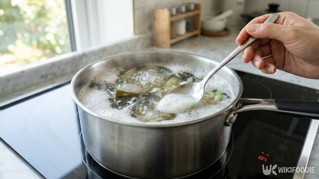 조개를 넣은 국물도 예외는 아니다. 조개를 끓이면 초반에 비교적 거친 거품이 생기는데, 이 안에는 껍데기 표면에 남아 있던 이물질이 섞였을 가능성이 있다. 이때는 첫 거품을 한 번 걷어내고 나서 다시 끓이는 편이 위생 면에서 깔끔하다.