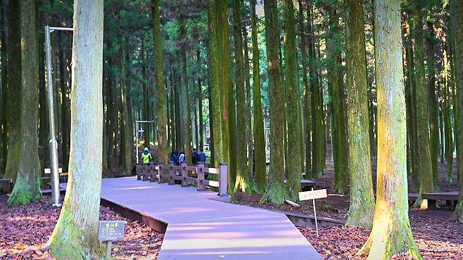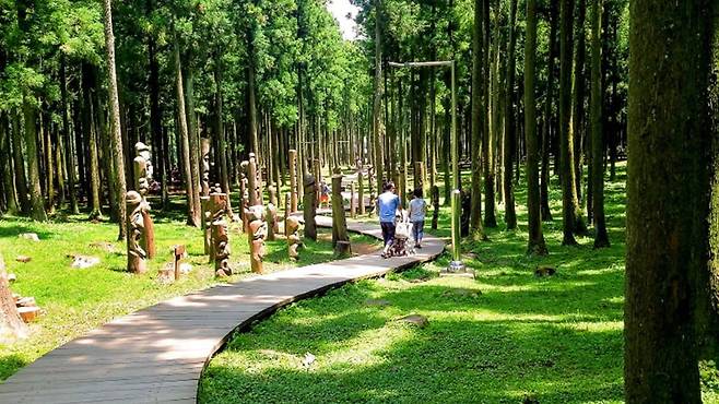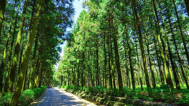 휴양림에 들어서면 가장 먼저 맞이하는 건 빽빽이 들어선 삼나무 숲이다. 한 걸음 내딛는 순간, 나무에서 뿜어져 나오는 피톤치드 향이 온몸을 감싸며 자연의 청량함을 그대로 전해준다.