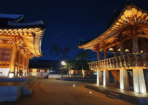 500년 역사가 숨 쉬는 시간의 정원이라 불리는 전라감영은 조선시대 호남의 중심이었다. 정갈한 조명 아래로 고즈넉한 마당과 담장, 그리고 선화당과 연신당은 빛 속에서 단아한 모습을 간직했다.