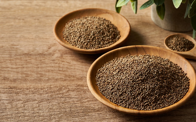 들깨가루 10 g에는 홍삼 추출액 한 병과 맞먹는 수준의 폴리페놀과 오메가-3 알파리놀렌산이 들어 있습니다.