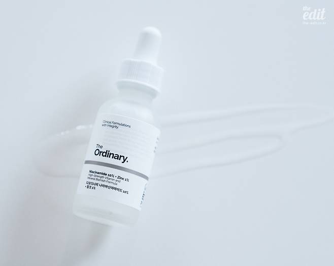 이 제품의 메인 성분인 나이아신아마이드는 이미 1900년대에 발견되고 꾸준히 사용되면서 많은 사람들에게 검증받은 안전한 성분입니다. 피부 장벽을 튼튼하게 하고 피부 톤을 맑고 깨끗하게 가꾸어 줍니다. 이 성분이 5%만 들어가도 미백 화장품으로 분류되는데, 이건 나이아신아마이드가 무려 10%나 들어갔기 때문에 2~3 방울만 써도 충분한 효과를 볼 수 있습니다. 여기에 과도한 유분은 줄여주고 막힌 모공을 케어하는 징크가 1% 들어있어서 특히 여름에 더 좋은 효과를 볼 수 있는데요, 바르자마자 얼굴이 쫀쫀해지는 느낌이 들더라고요.