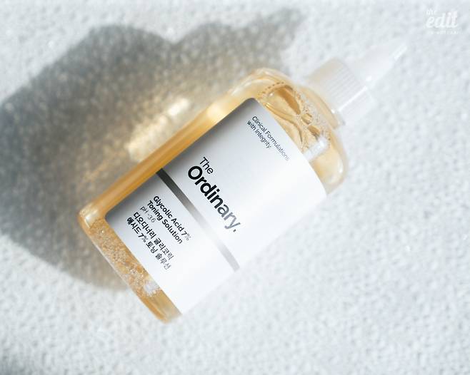 아무리 좋은 세럼을 써도 피질에 각질이 쌓여있으면 그 성분이 피부에 흡수가 되지 않더라구요. 그래서 각질 관리는 좋은 성분을 쓰는 것만큼이나 중요해요. 거칠었던 피부도 각질 제거만 잘해줘도 피부결이 달라지고 안색이 밝아지거든요. 디오디너리 ‘글리코릭 애시드 7% 토닝 솔루션’은 AHA의 일종인 글리코릭 애시드가 7% 나 들어가 피부의 각질을 효과적으로 관리해 주는 토너입니다. 고강도 각질제거 토너라 매일 사용하기보다는 주에 2~3번 정도 화장솜에 묻혀 가볍게 닦아내는 정도로도 충분합니다. 꼭 밤에만 쓰고, 낮에는 선크림을 바르는 걸 잊지마세요.