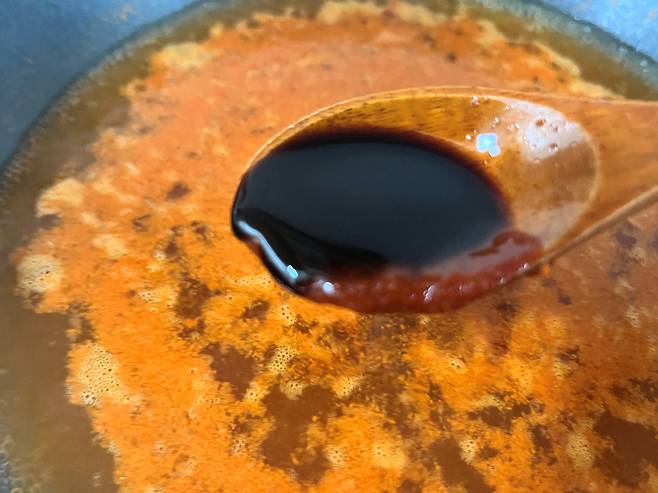 고춧가루 2스푼, 고추장 3스푼, 간장 2스푼, 설탕 3스푼