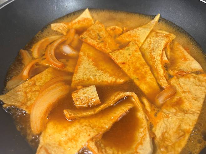 썰어 놓은 어묵을 먼저 넣어서 맛있는 육수가 우러나도록 합니다.