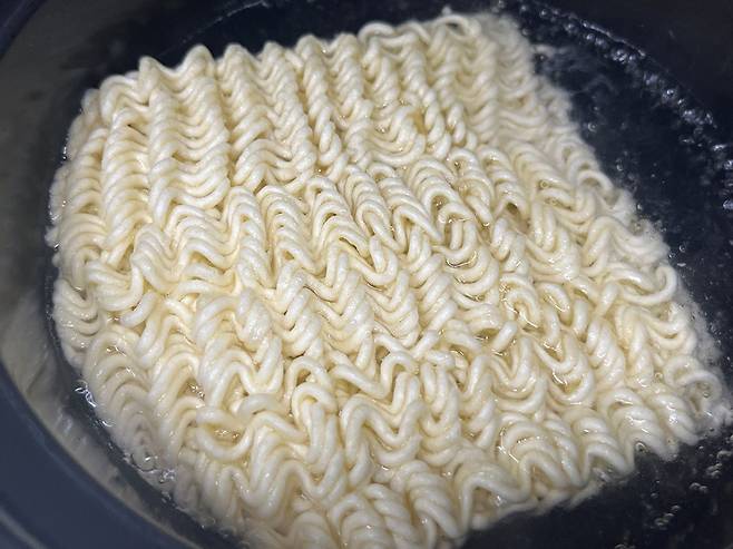 면 사리를 넣은 후 약불로 낮춰서 끓입니다. 면사리에 국물이 잘 밸 수 있도록 섞어 주세요.