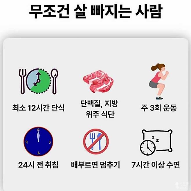 운동 외에도 식습관은 체중 조절에서 큰 비중을 차지한다. ‘최고 12시간 단식’은 공복 시간을 확보해 인슐린 분비를 줄이고 지방 연소를 촉진하는 데 도움을 준다. ‘단백질·지방 위주 식단’은 혈당 변동을 줄이고 포만감을 유지하기 위한 방식이다. 탄수화물 섭취를 줄이고, 그 대신 단백질과 지방 위주의 식단을 구성하면 과식을 방지하고 에너지 대사를 원활하게 만들 수 있다.
