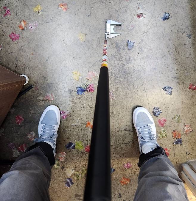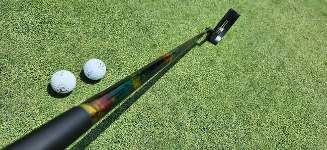 색상 또한 매우 화려한 수채화 그림물감으로 마감된 것으로 보입니다. Watercolor라고 회사는 설명하는데, 제조 후 모든 샤프트가 손으로 마감된다고 하네요. 일단, 고무 퍼터 그립이 없어서 육각 모양의 카본 핸들을 그대로 잡고 퍼팅하는 느낌이 신기합니다. 새로운 디자인에 강렬한 첫인상으로 인해 샤프트만 놓고 본다면 10점.