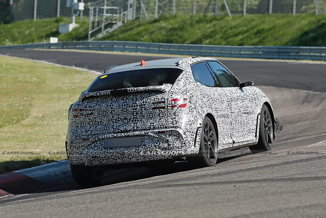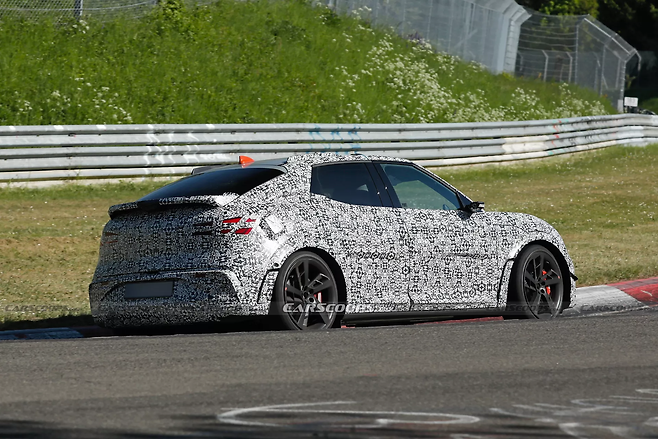 특히 눈에 띄는 점은 포르쉐 911 GT3 RS를 연상시키는 에어로 덕트와 루프 스트레이크다. 프런트와 리어 펜더 뒤쪽에 각각 공기 배출구가 마련됐으며, 루프에는 공력 성능을 보조하는 스트레이크를 적용해 고속 주행 시 다운포스를 확보하는 데 기여한다.