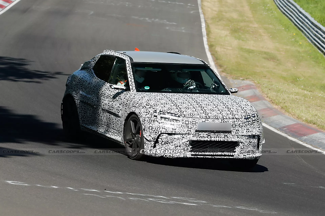 제네시스가 고성능 전기차 시장 진출에 속도를 내고 있다. 브랜드 최초 고성능 서브라인 ‘마그마(Magma)’의 첫 번째 양산 모델인 GV60 마그마가 최근 독일 뉘르부르크링 서킷에서 주행 테스트를 진행하며 실체를 드러냈다.