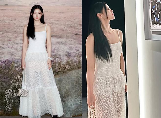김유정은 최근 화이트 드레스룩을 선보이며 우아하면서도 청순한 무드를 자랑했습니다. 나시 형태의 시스루 디테일과 플레어 형태의 스커트가 조화를 이루어 시원하면서도 화사한 느낌을 주었습니다. 여기에 진주 스트랩이 달린 미니 핸드백을 들고, 전체적인 룩에 세련됨과 품격을 더했죠. 그녀의 스타일은 단순히 예쁜 외모를 넘어서, 세련된 패션 센스까지 돋보이게 합니다.