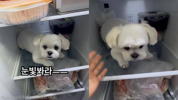 지난달 17일 보호자가 자신의 유튜브 계정에 올린 영상에는 냉장고 안에 들어가 있는 뚜뚜의 모습이 보이는데요.