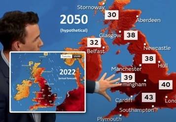 | ▲ 영국 기상청이 '기후위기에 제대로 대응하지 않은 상황을 가정해 예측한 2050년 7월 가상의 일기예보는 2022년 실제 기상예보와 거의 동일했다. |