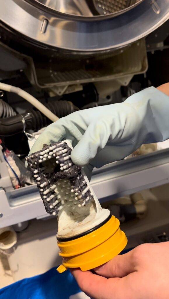 이 필터가 막히면 배수가 제대로 되지 않아 세탁기의 고장 원인이 되기도 하며 악취와 곰팡이를 유발할 수 있습니다.