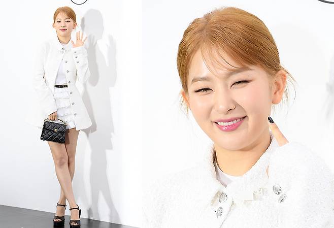 또, 슬기는 아이보리 트위드 코트를 착용해 고급스럽고 화려한 분위기를 자랑했습니다.