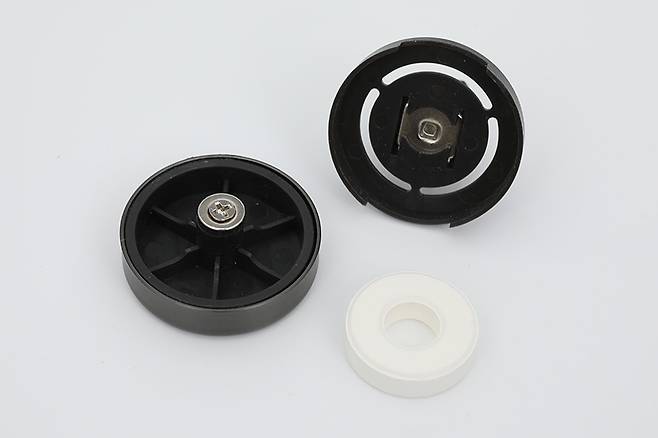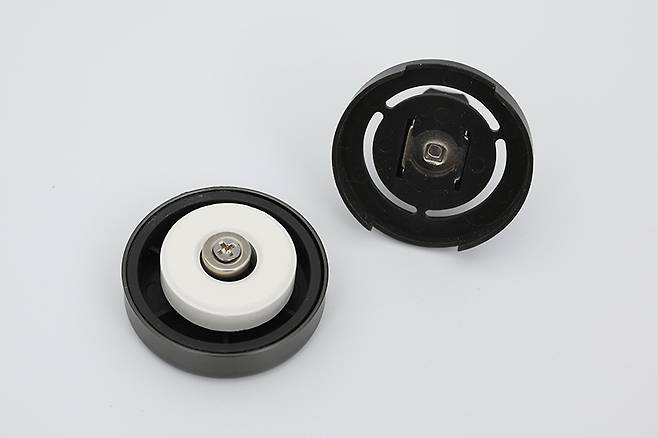 하우징 뒷면 캡를 열면 안쪽에 방향제를 넣을 수 있는 공간이 나타난다. 하우징 안쪽 가운데에 있는 금속 부분은 자석으로, 뒷면 캡에 클립을 끼워 넣었을 때 하우징 앞면과 뒷면을 고정해주는 역할을 한다.