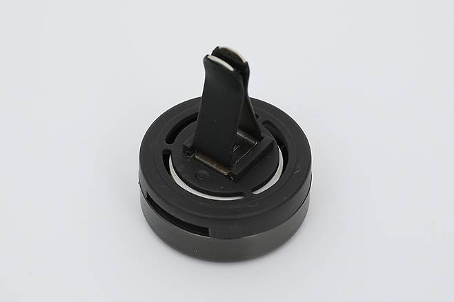 하우징 뒷면 캡은 플라스틱으로 되어있으며, 클립을 끼울 수 있는 ㄷ자 홈이 파여져 있다. 뒷면에는 공기가 내외부로 순환할 수 있도록 뚫려있는 에어홀도 확인할 수 있다.