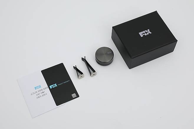 구성품으로는 픽스 시그니처 차량용 방향제 XAF-501 본체와 두 가지 길이의 클립, 보증서, 그리고 사용 설명서가 제공된다.