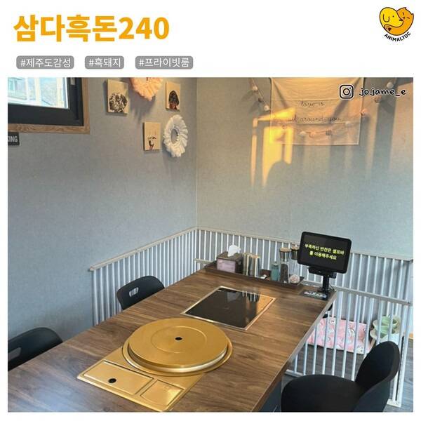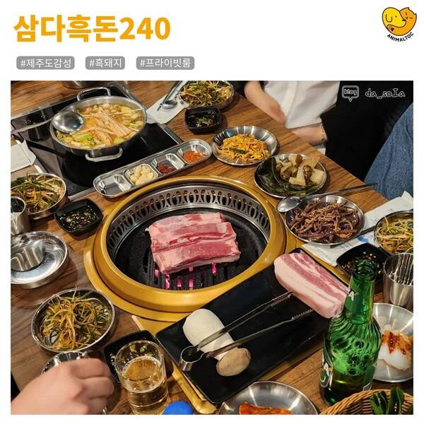 삼다흑돈240은 제주도 감성이 느껴지는 인테리어로 되어 있고 텍사스 바비큐 맛집으로 유명한 곳입니다. 저녁에 가시면 항상 웨이팅을 해야 하는 곳이기 때문에 네이버 예약을 하신 후 방문하시는 것을 추천드립니다. 개별룸으로 되어 있어 프라이빗하게 즐길 수 있습니다.