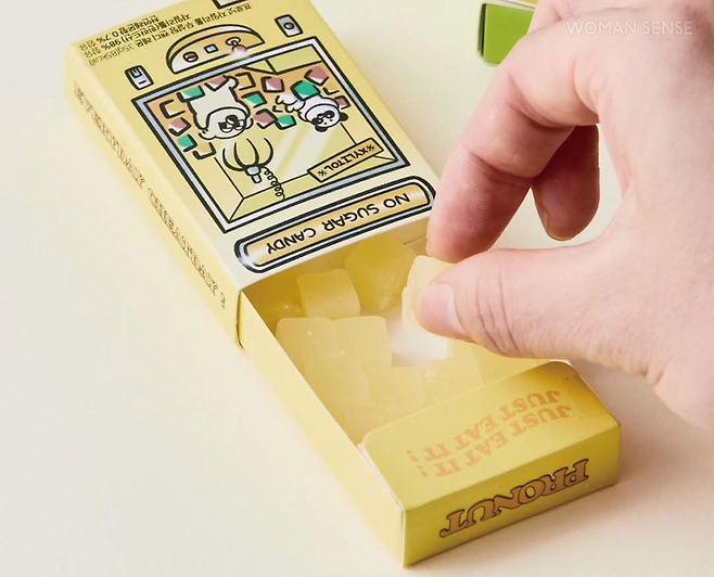 건강한 달콤함은 물론 입속 상쾌함까지 책임지는 프로넛 무설탕 자일리톨 캔디는 설탕 대신 대체당 자일리톨로 단맛을 냈다. 100% 핀란드산 자일리톨을 사용해 입안에서 오래 굴려 먹을수록 자일리톨 성분이 치아 구석구석 스며들어 구강 건강에 도움이 된다. 혈당이나 인슐린 수치를 높이지 않아 안심하고 먹을 수 있고, 사탕 1개당 3.5kcal로 부담 없이 섭취 가능하다. 오리지널, 레몬, 복숭아, 샤인머스켓, 콜라, 페퍼민트 총 6가지 맛.