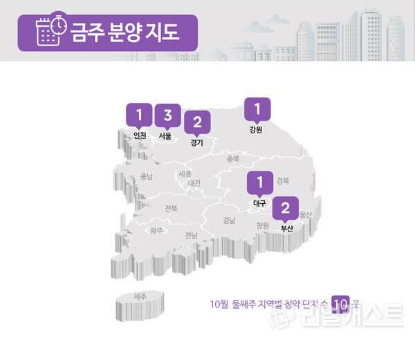 부동산인포에 따르면 10월 2주 전국에서 신규 청약 및 입주자를 모집하는 곳은 10곳, 총 6812가구로 집계됐습니다(총 가구수 기준).