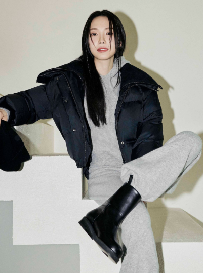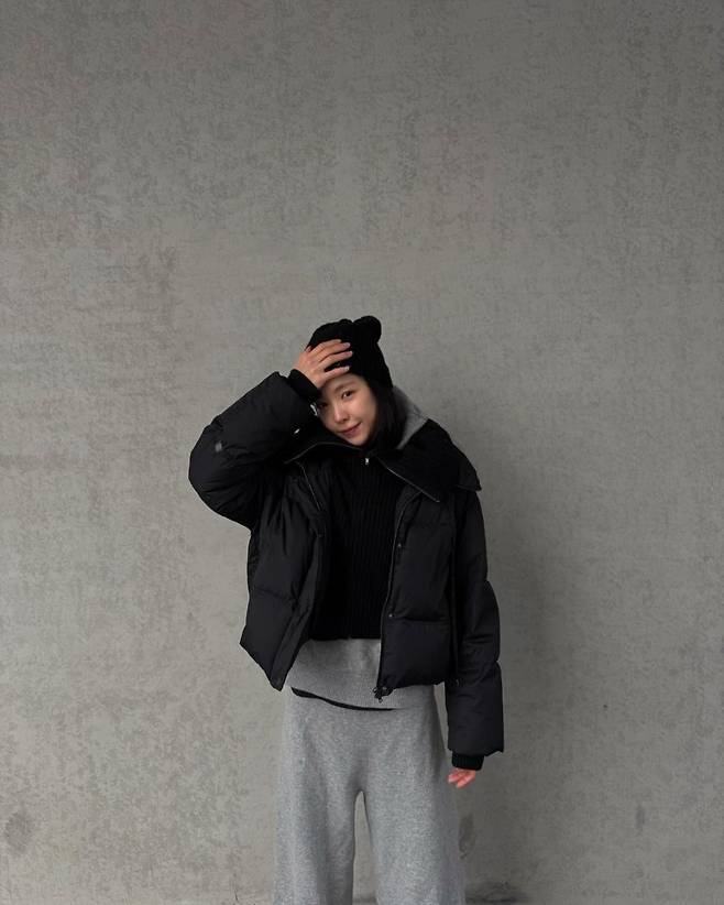 여기에 귀여운 비니와 자연스러운 포즈가 더해져, 마치 “이 겨울엔 이렇게 입어야 한다”는 걸 몸소 보여주는 듯해요.
