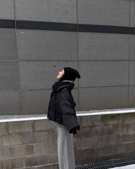 차분한 그레이와 블랙 톤의 조합으로 편안하면서도 세련된 캐주얼룩을 완성했죠. 정말 추운 요즘 날씨 뿐만 아니라 봄까지 쭈욱 입기 좋은 숏패딩 코디이기도 하죠.
