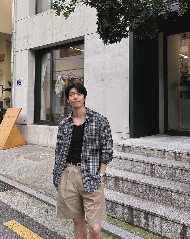 이번 룩에서 주목할 점은 ‘심플한 베이스 + 체크 포인트’ 공식이다. 블랙 톱과 베이지 팬츠라는 무난한 기본 조합 위에 체크 셔츠를 걸쳐 스타일 지수를 한 단계 끌어올린 것이다. 실제로 남성들이 따라 하기 쉬운 조합으로, 일상 속 데이트룩부터 주말 산책룩까지 다용도로 활용할 수 있다. 코디 팁으로는 체크 셔츠를 바지 안에 넣어 깔끔하게 입거나, 단추를 모두 채워 포멀한 무드를 줄 수도 있다. 또한 버뮤다 팬츠 대신 데님 팬츠를 매치하면 조금 더 캐주얼한 분위기로 변주 가능하다.