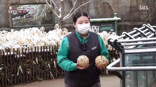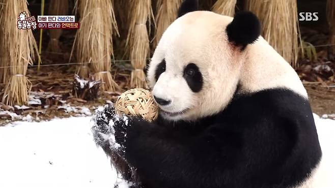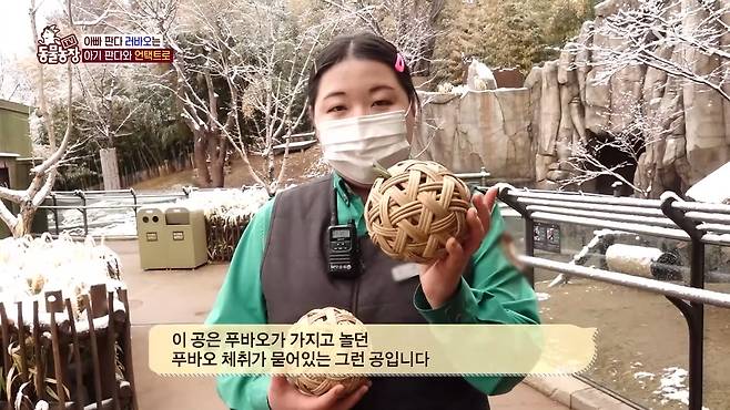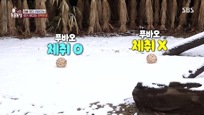 아기 판다 푸바오가 태어난 지 1년이 채 되지 않았을 무렵 '오바오' 오승희 사육사는 러바오의 방사장에 푸바오가 가지고 놀던 대나무 공과, 새 공을 가져다 두고 반응을 지켜봤습니다.