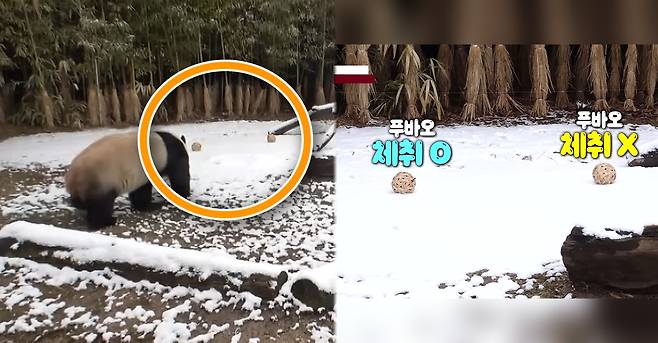 한편 여기서 러바오가 정말 공에 묻은 푸바오의 냄새를 맡고 좋아하던 게 맞을까, 러바오는 단지 대나무 공을 좋아하는 건 아닐까 하는 호기심이 생깁니다.