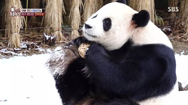 이 냄새를 오래 간직하려는 듯, 러바오는 공에 격하게 몸에 비비면서 '기쁨이' 라는 이름처럼 너무나도 기뻐했습니다. 태어나 한 번도 딸을 만나보지 못한 러바오였지만, 그 순간만큼은 딸과 하나 된 듯한 감동을 선사했지요.