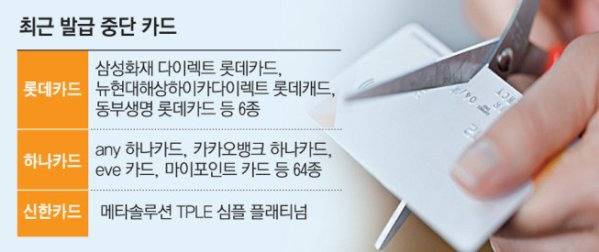 카드사들이 기존 신용카드 상품의 신규·갱신 발급을 중단하는 등 라인업 가다듬기에 한창이다. 서비스가 중복되는 카드들을 일원화하는 등 제품군을 단순화하기 위한 목적으로 풀이되지만 수수료 인하에 따른 ‘알짜 카드’가 줄줄이 단종되면서 소비자 혜택도 축소되고 있다는 지적이 나온다.