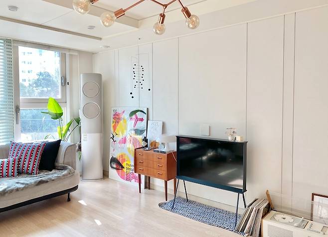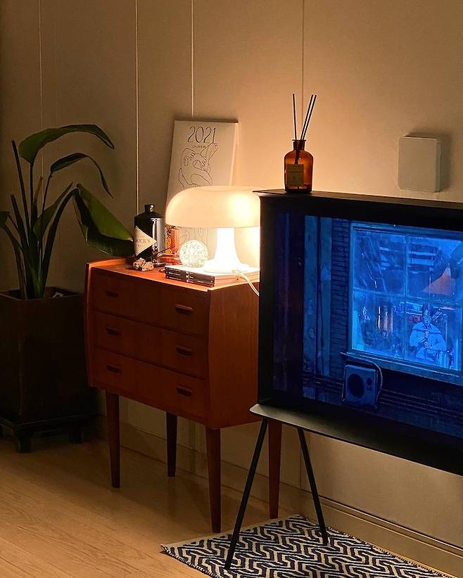 TV는 삼성의 세리프 TV인데요. 세리프 TV 출시 당시에 디자이너가 세리프 타이포 i 의 옆면 곡선을 따왔다는 인터뷰를 보고 '와!!!!'하고 저건 무조건 사야지 결심하게 만들었던 세리프 TV입니다.