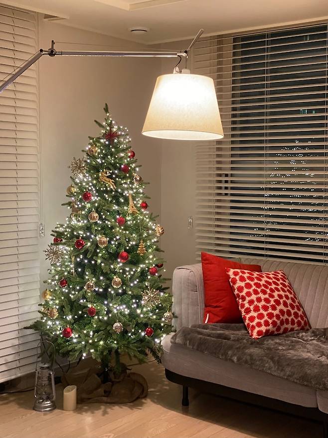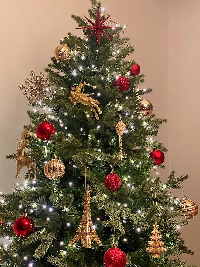 결혼하고 매년 트리를 사고 싶었지만 말만 하고 사지 못하다가 올해 큰 마음먹고 구매한 트리에요. 180cm의 트리인데 막상 설치하고 보니 부담스럽지 않은 크기라 아주 만족하고 있어요. 어떻게 꾸밀까 고민하다가 클래식한 조합인 골드와 레드를 컨셉으로 잡아보았어요.