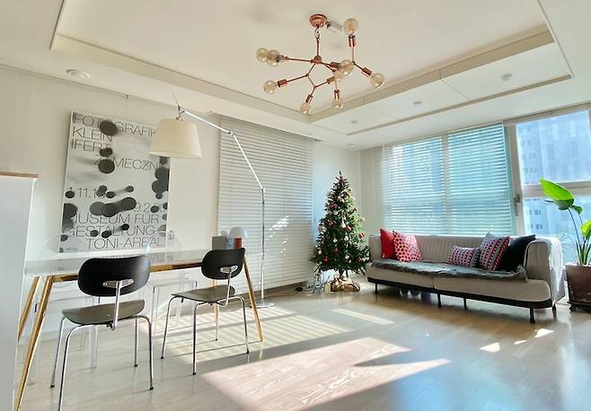 다만 천장에서 조금 아래로 내려오는 샹들리에 같은 형식의 조명이라 집의 층고가 높았다면 더 좋지 않았을까 싶어요. 다행인 건 저희 부부가 둘 다 키가 작아서 조명에 부딪히지는 않고 사용하는 중입니다 ㅎㅎㅎ