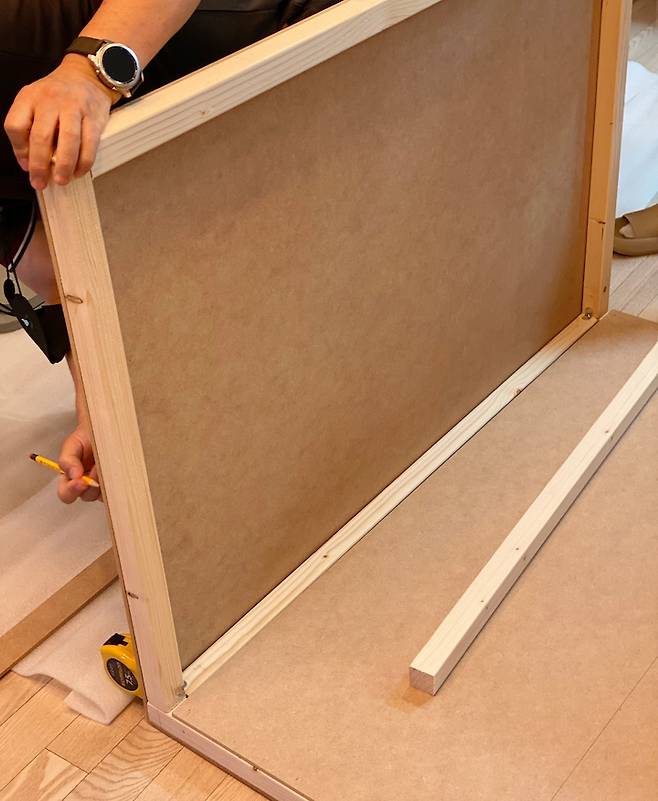 2. 길이를 재단한 각목으로 뼈대를 만듭니다.