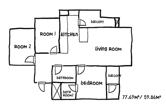 저희 집은 방이 3개, 화장실이 2개인 23평 아파트입니다. 지어진 지 오래되지 않아 단지가 깨끗하고 평수에 비해 방들이 확장된 형태로 넓게 사용할 수 있고, 몰딩이 밝은 것이 이 집의 장점입니다. 전셋집이기 때문에 최대한 깨끗하고 손댈 필요가 없는 집을 선택했어요. 3층으로 층수가 높지는 않지만 화단의 나무들이 6년 동안 많이 자라 지저분한 뷰를 가려주고 계절마다 바뀌는 나무들을 관찰하는 재미가 있는 집이랍니다.