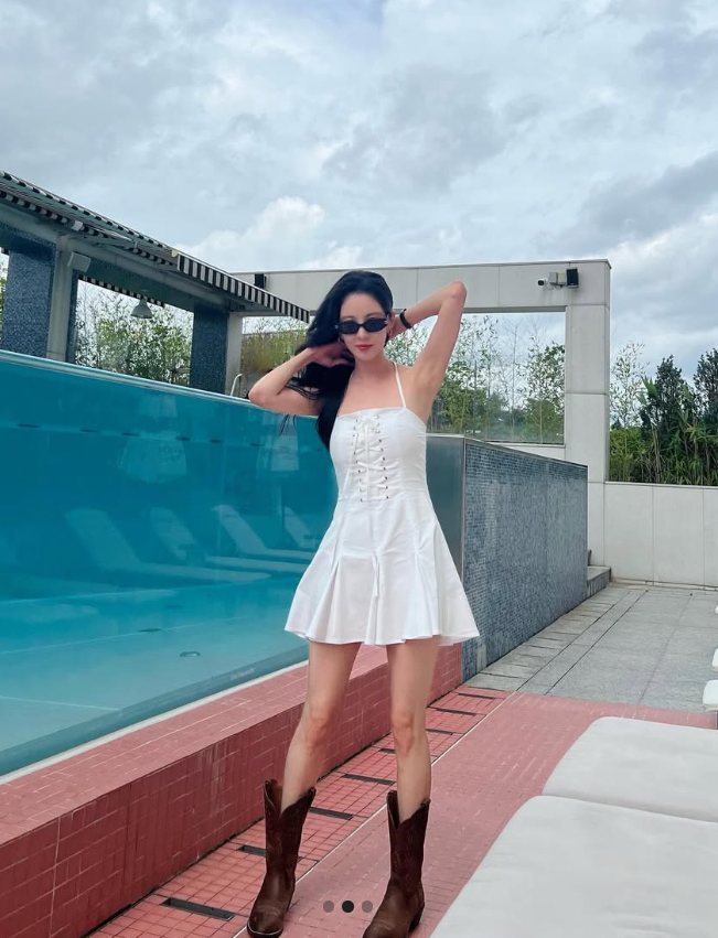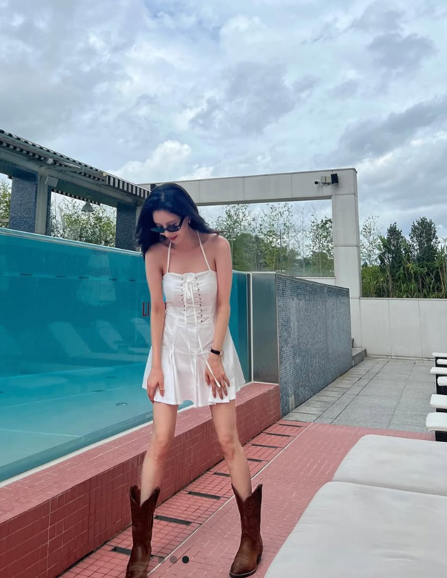 평소 우아하고 단아한 이미지로 사랑받는 서현 님이 이번엔 한층 더 스타일리시하고 개성 넘치는 원피스룩을 선보였어요. 바로 화이트 코르셋 미니 원피스에 브라운 웨스턴 부츠를 매치한 청순하면서도 자유로운 감성의 룩이었는데요.