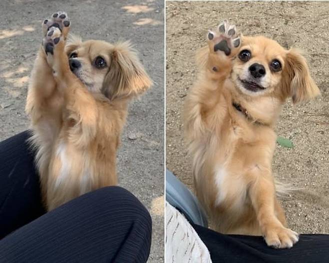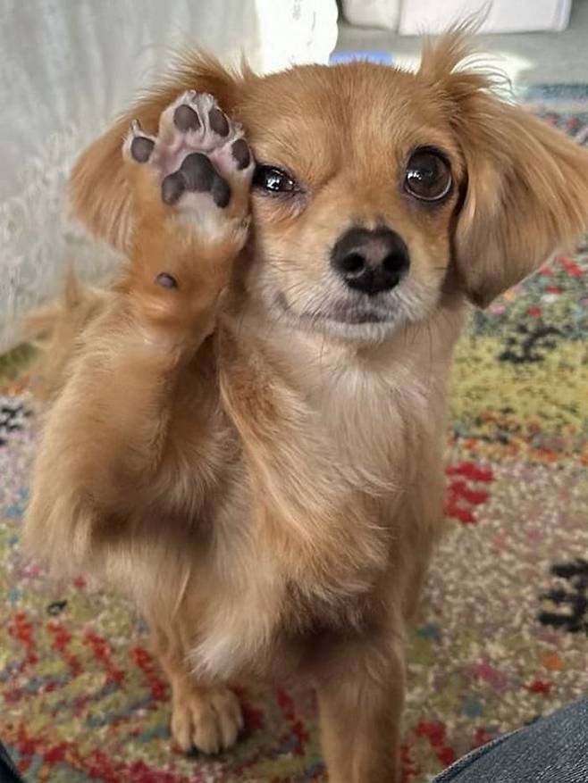 공개된 사진 속에서 치와와 강아지는 앞발을 번쩍 들어 올리면서 자기 앞발을 자랑하고 있는 모습이 담겨 있었죠.