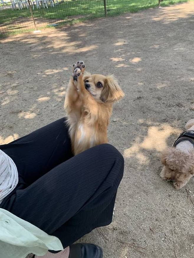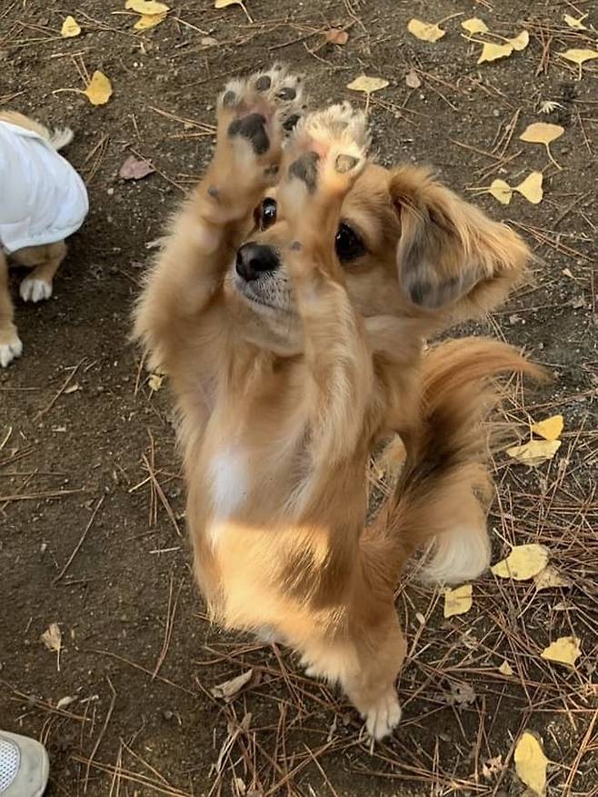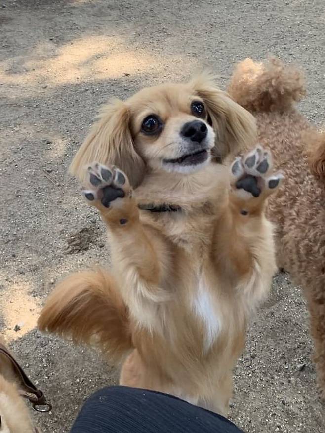 남다른 사회성을 가지고 있어서 길 지나가는 사람들마다 앞발을 보여주느라 정신 없이 바쁜 강아지. 이것이 진정한 극E 성향이 아닌가 싶습니다.