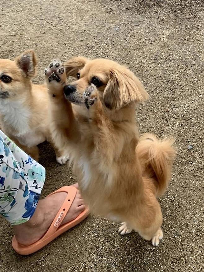 초코칩이 콕콕 박힌 듯 꾸덕꾸덕해 보이는 발바닥을 연신 보여주면서 인사하는 강아지의 귀여운 일상이 너무 귀여워 자꾸만 보게 됩니다.