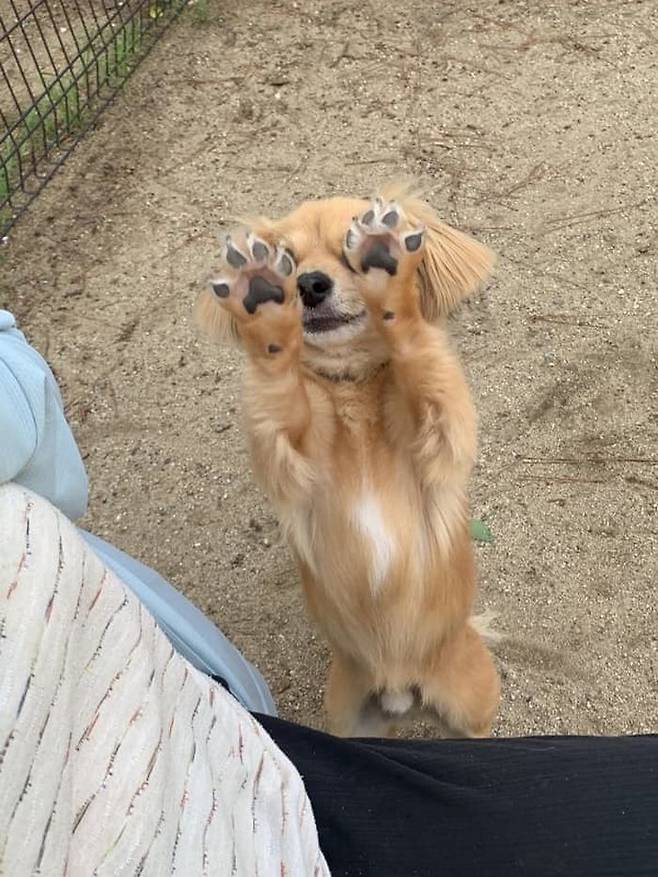 지금까지 이런 강아지는 없었습니다. 자기 발바닥 좀 보라면서 앞발을 번쩍 들어 올리며 자랑하는 강아지가 있어 보는 이들을 심쿵하게 하는데요.