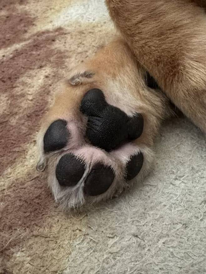 기대에 가득 찬 눈빛으로 초코칩이 콕콕 박힌 듯한 자기 발바닥을 연신 보여주는 강아지의 모습이 너무 귀엽고 사랑스럽지 않습니까.
