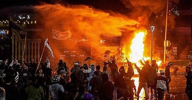 배경에는 인도네시아 내 만연한 사회 불평등과 최근 실업률 급증, 인플레이션, 세금 인상 등으로 생활고를 겪는 서민들의 터진 불만이 있다.