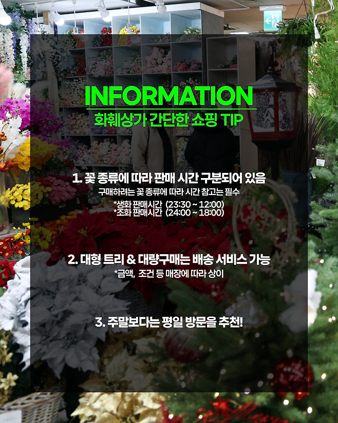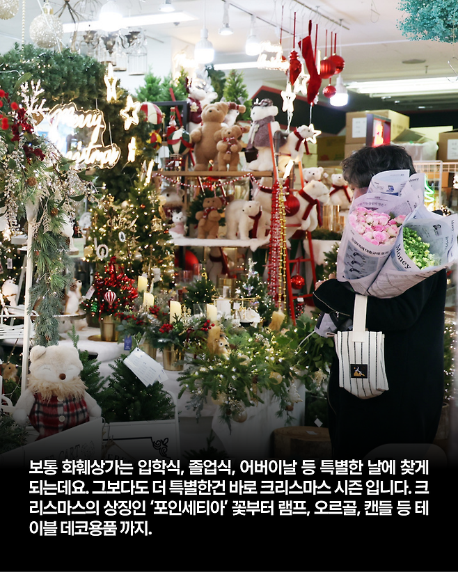 이렇게 다양한 매력을 가진 고속터미널 화훼상가에서 여러분만의 특별한 크리스마스를 준비해보시는 건 어떨까요?
