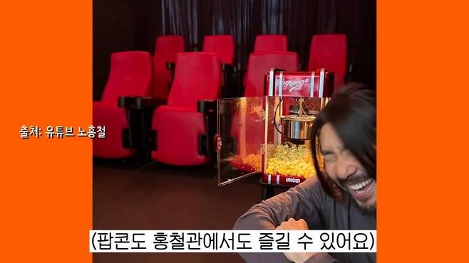 원래는 평범한 공간이었던 곳에, 노홍철은 과감하게 영화관을 만들었습니다. CGV의 허락을 받아 스크린과 좌석을 설치하고, CGV에서 사용하는 것과 동일한 방음재와 음향 장비를 도입하여 영화관의 퀄리티를 그대로 재현했습니다. 좌석은 7개로 아늑함을 더했고, CGV 작업팀이 직접 시공하여 완성도를 높였습니다. 심지어 팝콘 레시피까지 CGV에서 제공받아 매일 팝콘을 튀기고 있다고 하니, 그 디테일에 감탄하지 않을 수 없습니다.