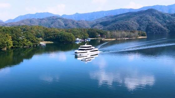 서울에서 불과 1시간 거리, 청평호 위를 수놓는 가평크루즈는 국내 최초의 436톤급 순수 전기 유람선입니다.