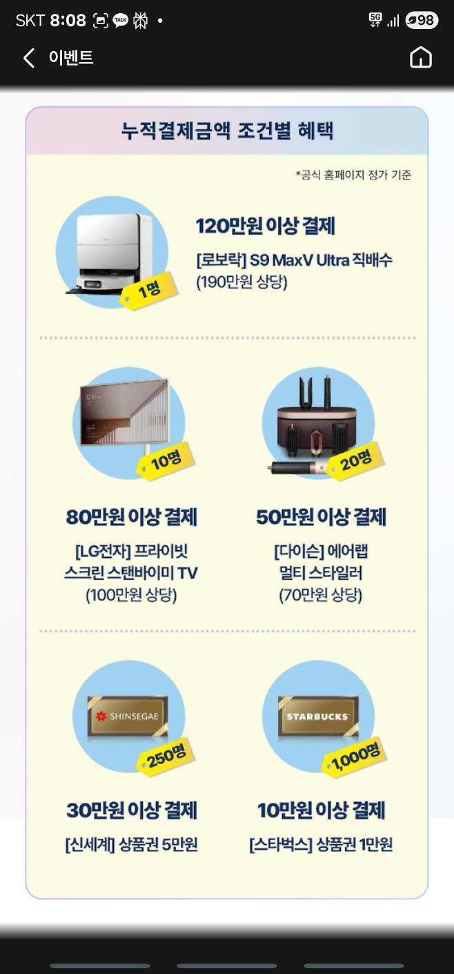 4. 디지털 멤버쉽 한도내 할인 (네이버, 쿠팡, 컬리 3개 걸어도 된다는 뜻합니다)