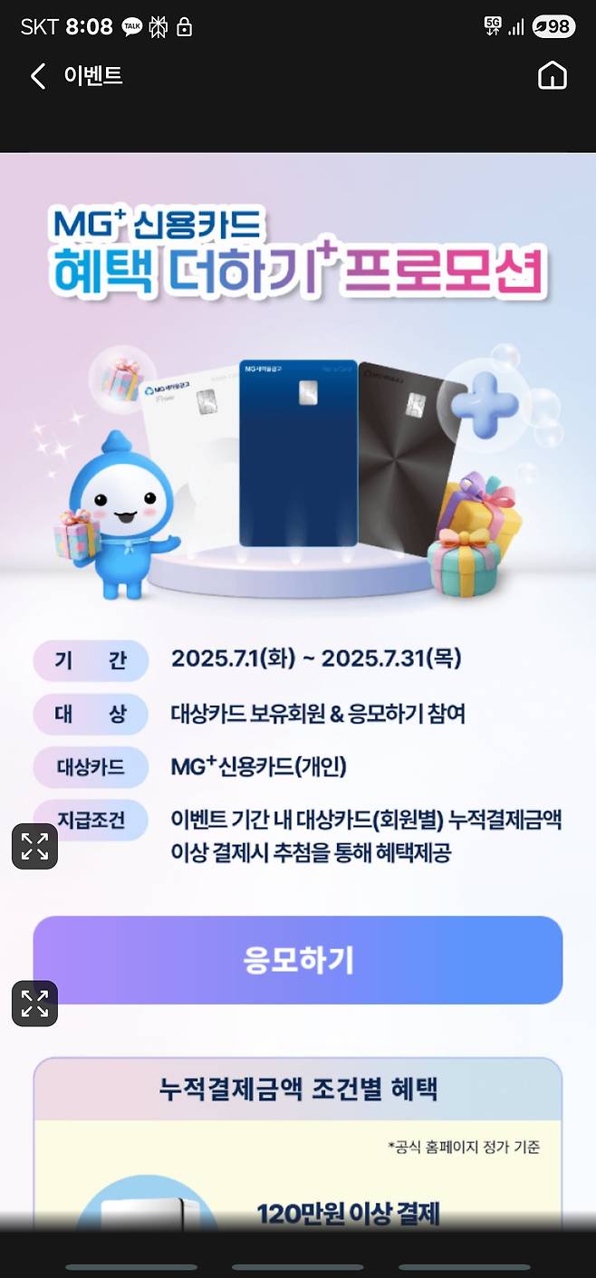 5. 새마을금고 자체적으로 카드사용하면 추첨통해 선물 주는 행사중 (응모필수)