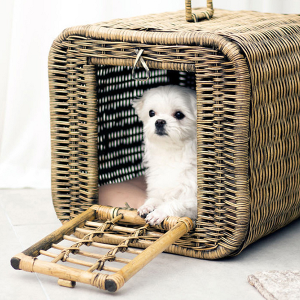 등나무로 만든 라탄 소재의 강아지 이동장 겸 하우스예요. 내추럴 인테리어, 빈티지 인테리어를 좋아한다면 추천해요. 이동장으로 사용이 가능하지만, 들고 다니기 불편할 수 있어서 장거리 외출을 가끔 하거나 자차가 있는 경우 추천합니다.
